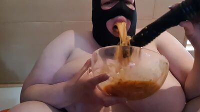 Mistress Jade had noticed that her brother was getting obese. She tries to keep him on a diet, but it is impossible. He always finds a way to get himself some junks. She makes him work out, but he claims that it is a lot of work. The mistress was not happy with the weight gain, she makes him throw up the food he had just eaten. She gives him her dildo shamelessly and makes him gag on it until he threw up everything he had eaten.